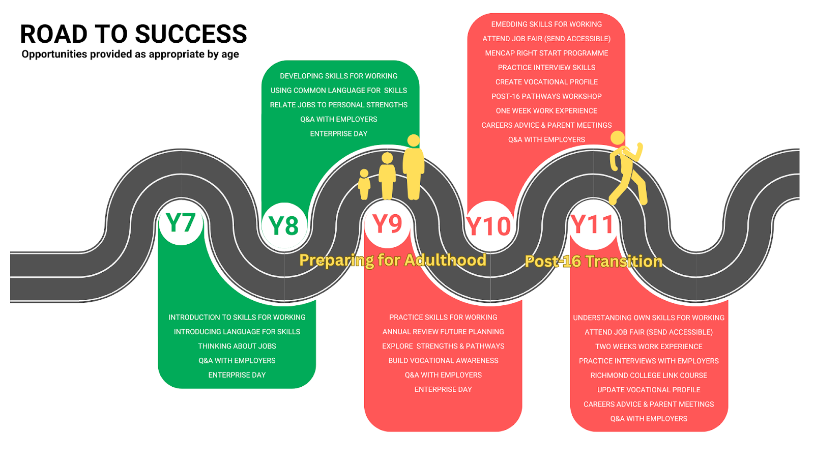 Learning from Career and Labour Market Information: We ensure students develop their understanding of the world of work. Our Key Stage 4 students attend a local area job fair annually, which has access for SEND students. We run a mini enterprise day each year as part of our Life Skills curriculum.