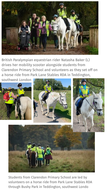 Here at Clarendon Primary we are long term friends with our local Park Lane Stables and their RDA trained, dedicated team.  A small group of 6 children attend weekly for a half term, before another 6 children will go. This enables every student in our older four classes the opportunity to attend every year. Whilst on site the children are given the chance to either ride a horse, or travel in a horse drawn carriage before they learn about how to take care of horses, brushing them, filling up hay bales and of course cleaning up the poo!